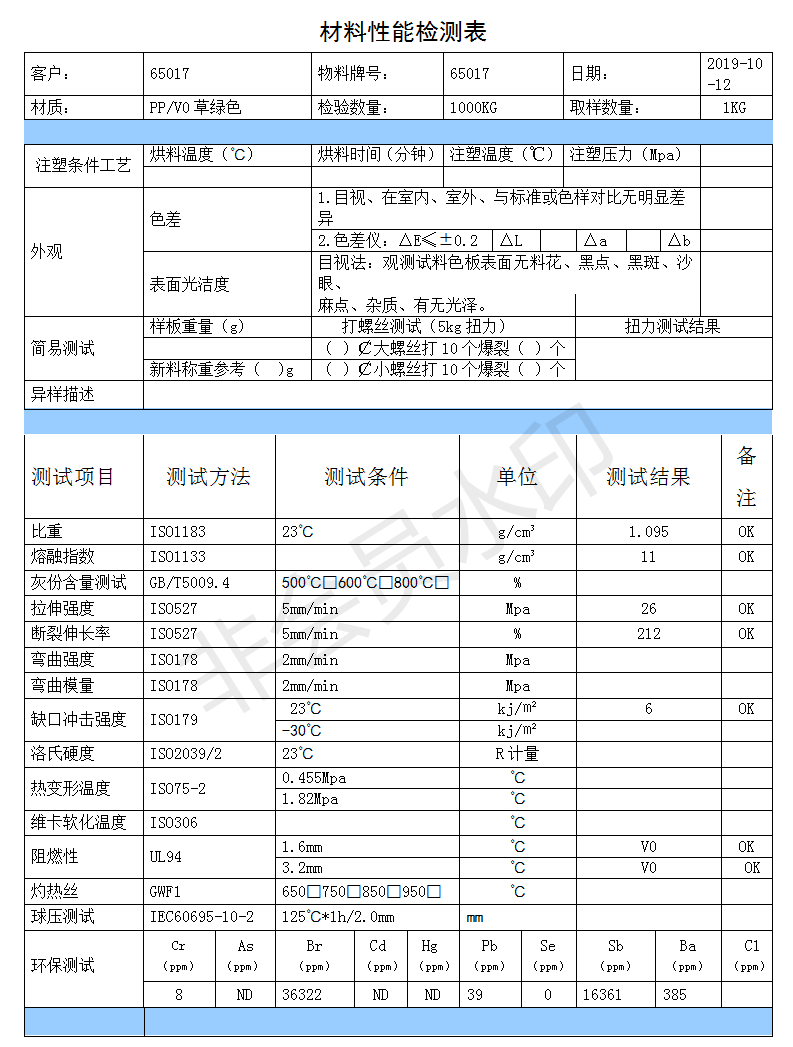 PP綠色阻燃防火V0